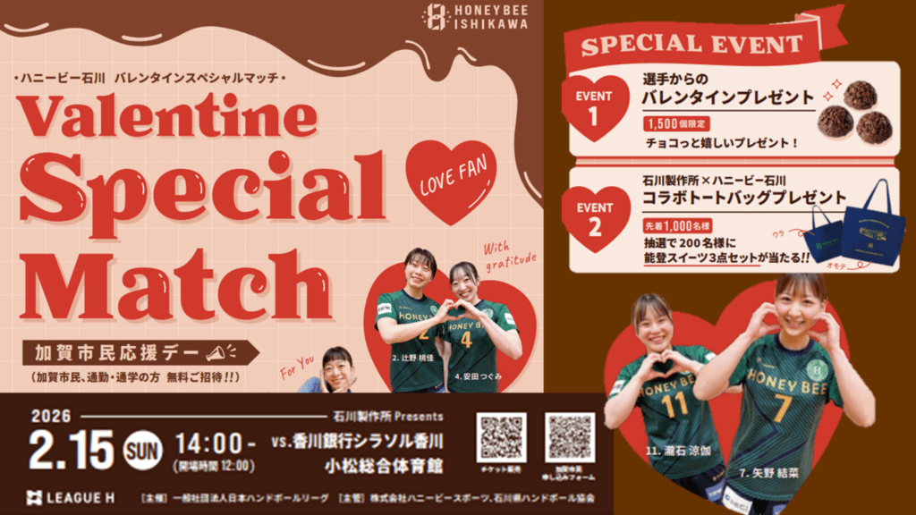 そしてこの小松大会のマッチデーパートナーである株式会社石川製作所(本社:白山市)様より、先着1,000名さまに特製ハニービーコラボトートバッグがプレゼント。